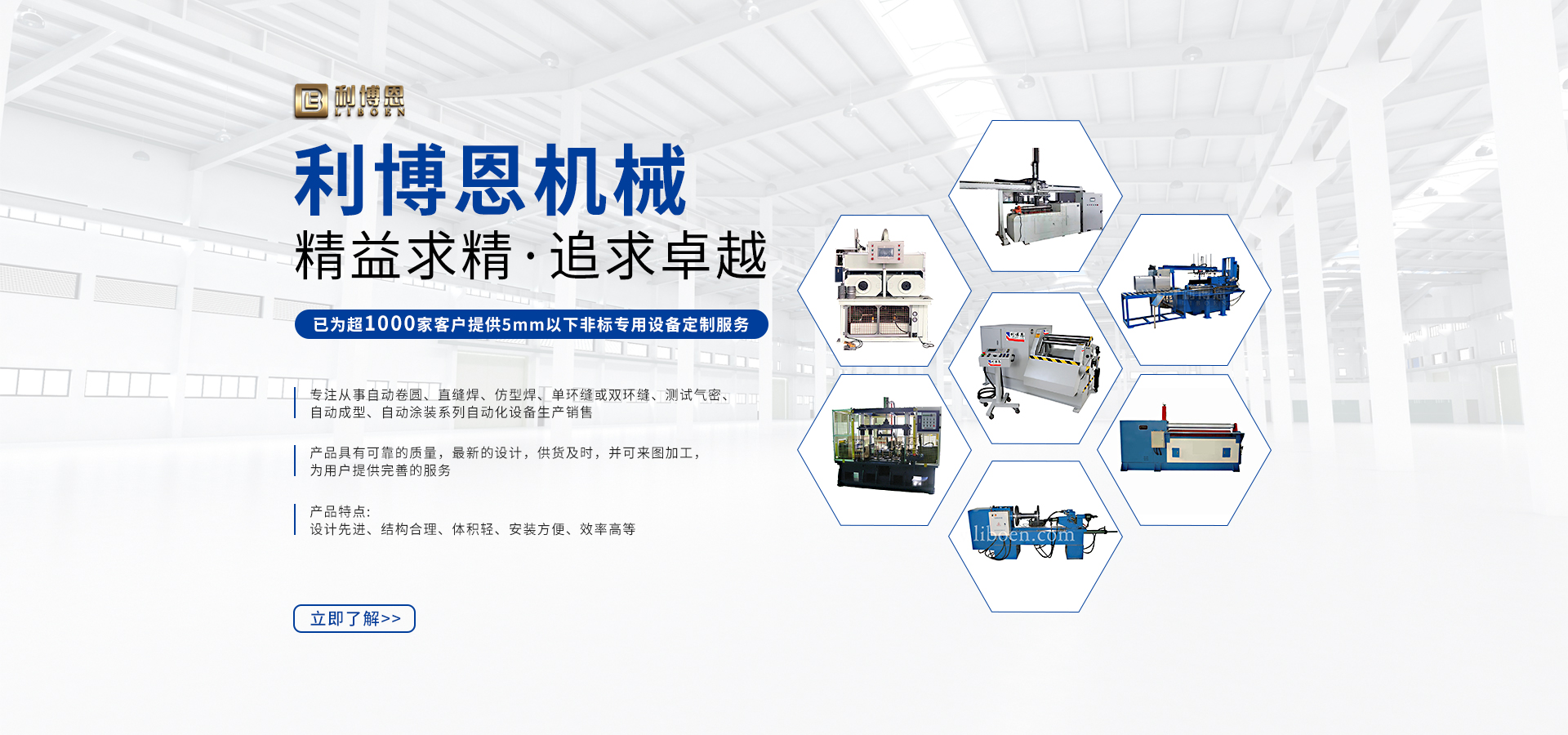 常州市利博恩機械有限公司是一家專業生產二輥卷板機,自動焊機,自動焊接機,自動焊接設備,直縫焊機,成型機,沖孔機,翻邊機,縮口機,卷圓機,儲氣罐生產線,鋁油箱生產線,電機殼生產線,焊接機器人,焊接設備自動化,焊接專機,直縫焊接設備,液壓整形機和超聲波激光設備等產品,采用實用性強為條件設計生產,使之具有設計先進,結構合理,體積輕,安裝方便,效率高等特點。